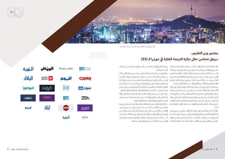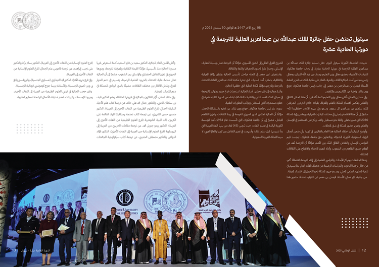 أعلنت جائزة الملك عبدالله بن عبدالعزيز العالمية للترجمة عن أسماء الفائزين بها في دورتها الحادية عشرة لعام ١٤٤٥ ه - ٢٠٢٤ م، حيث قرر مجلس أمناء الجائزة، وبعد استعراض تقارير اللجنة العلمية ولجان التحكيم منح الجائزة في فروعها الستة لكل من: